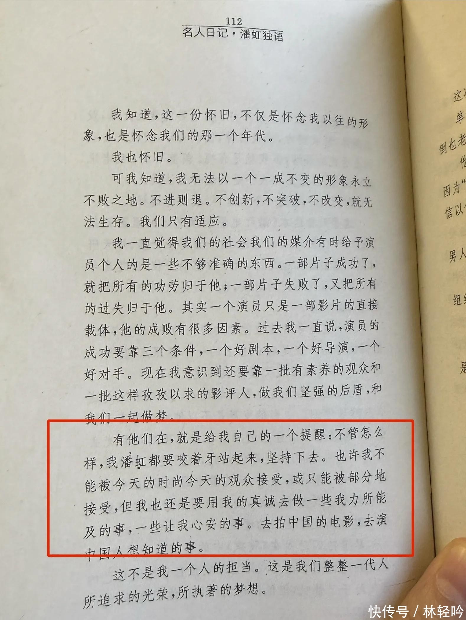 事业巅峰期,潘虹心中燃烧着纯粹的电影理想,在散文集《潘虹独语》中写道: